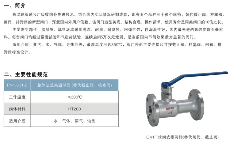 本公司設(shè)計生產(chǎn)的一體式防泄漏耐磨耐高溫排污球閥采用進(jìn)口對位聚苯閥座。法蘭標(biāo)準(zhǔn)有:國標(biāo)、美標(biāo)、日標(biāo)、德標(biāo)法蘭。材質(zhì)有不銹鋼、碳鋼球閥、合金鋼。