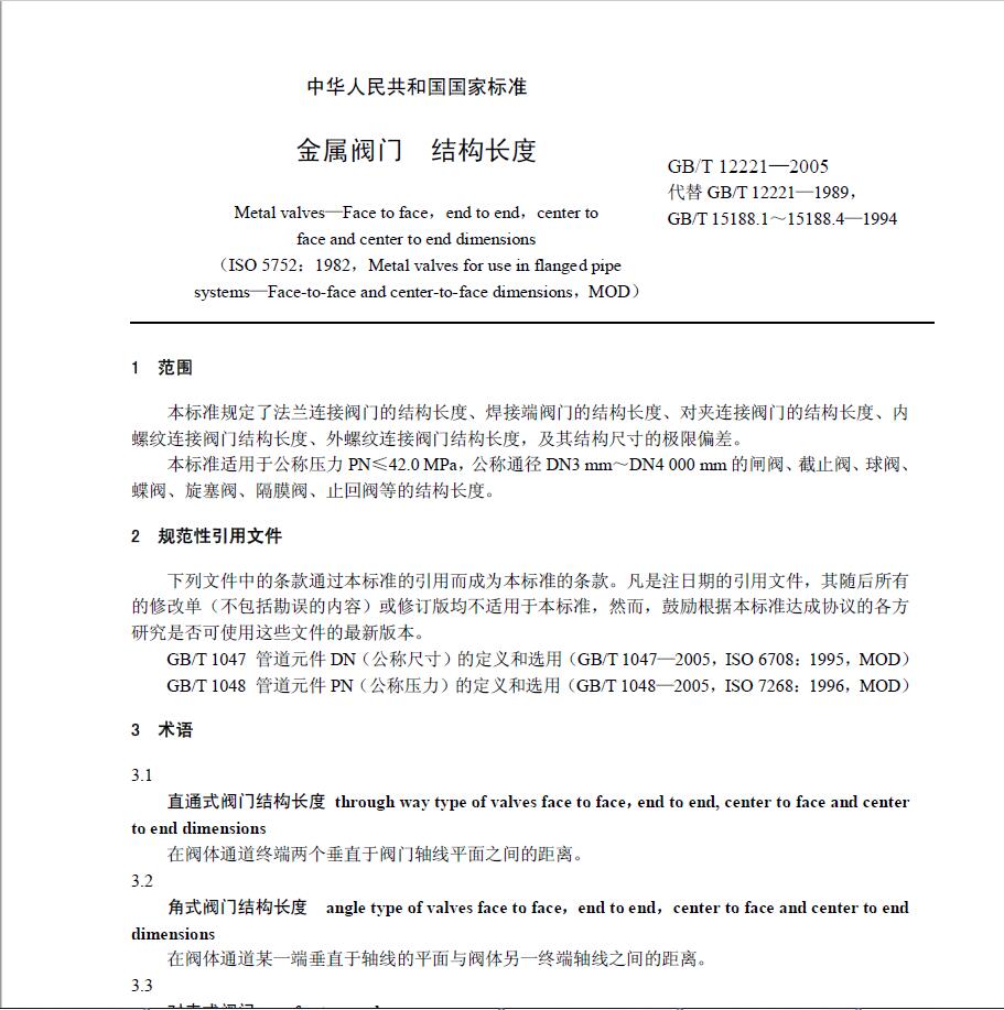 GB12221-2005閥門的結構長度 【下載】